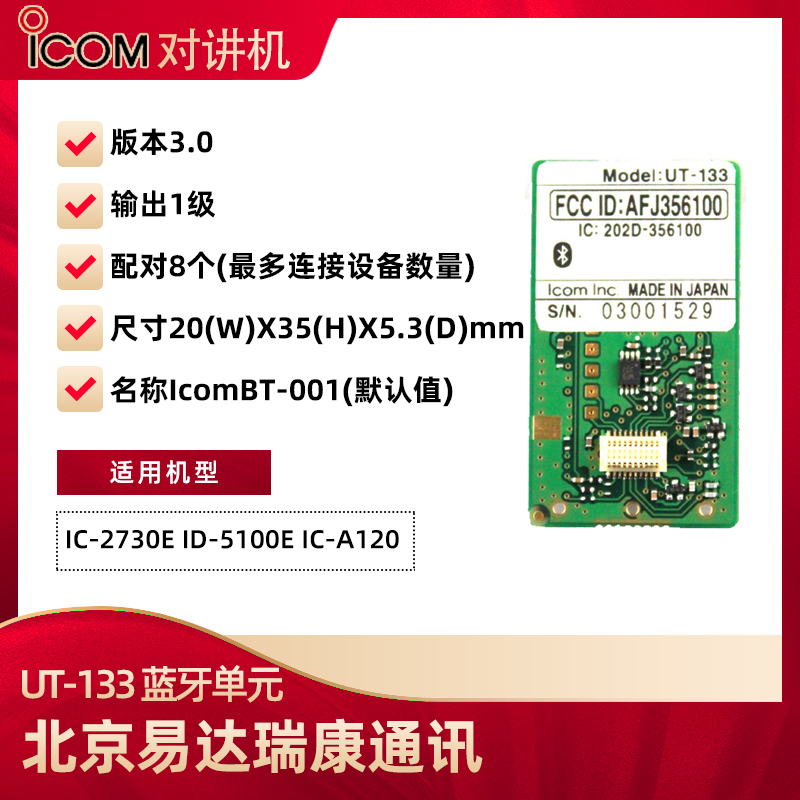 您當前的位置: 首頁 > 產品中心 > ICOM艾可慕UT-133藍牙單元車臺藍牙配件配合耳機使用預定詳詢客服