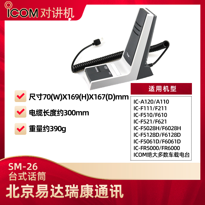 艾可慕ICOM車載臺麥克風(fēng)SM-26臺式話筒通用PTT話筒對講機話筒話咪